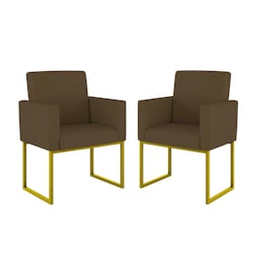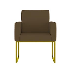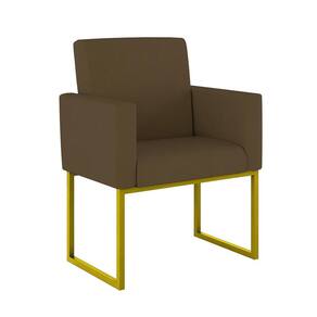 Kit 2 poltrona cadeira decorativa recepção base ferro dourado Cor: marrom A poltrona nina traz muita segurança e conforto para seu ambiente. Sua estrutura é 100% em madeira eucalipto e todo conforto se deve a espuma com densidade d-23. Com um design sofisticado, a poltrona nina conta com acabamento em suede.