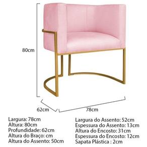 Informação Complementar: 2x Poltrona Decorativa Base de Ferro Suede Munique Rosa Bebê/Dourado
