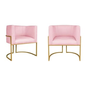 Kit 2 Poltrona Decorativa Base de Ferro Suede Munique  Rosa Bebê/Dourado