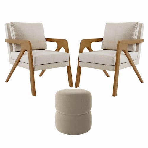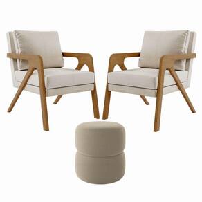 Kit Poltrona com Puff Escritório Luxo Lana Madeira Maciça, Confortável e Sofisticada