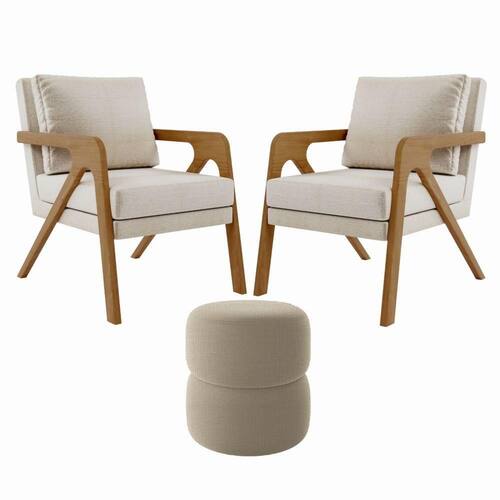 Kit Poltrona com Puff Escritório Luxo Rafa Madeira Maciça, Confortável e Sofisticada