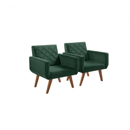 Kit 2 Poltronas 1 Lugar Braço Anabelle Unidecor Verde Produzida artesanalmente e com estrutura em Madeira proveniente de Reflorestamento, esta poltrona possui durabilidade, resistência e um excelente acabamento. A Poltrona Anabelle é Irreverente, elegante e muito confortável! A opção perfeita para transformar a decoração de seu lar ou escritório.