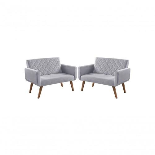 Kit 2 Poltronas 2 Lugares Braço Anabelle Unidecor Cinza - Blush
