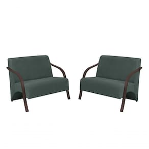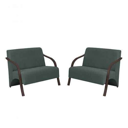 Kit 2 Poltronas Namoradeira 2 Lugares Vênus D Salla Suede Braço Madeira