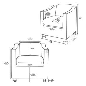 Largura do encosto: 55 cmProfundidade do assento: 46 cmAltura dos pés: 8 cmAltura interna do braço: 15 cmAltura do chão ao braço: 59 cmEspessura do braço: 10 cmPeso: 11 kg.Informações Importantes: