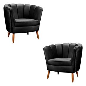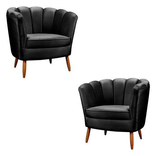 01 Kit 2 Poltronas Decorativa Ariel Petala com Pes de Madeira