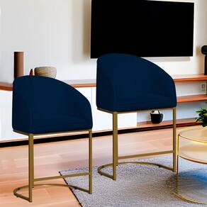 Kit 2 Poltronas Banqueta Decorativa Base Metal Mia Suede Azul Marinho - LM DECOR