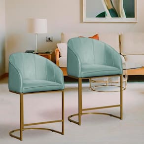 Kit 2 Poltronas Banqueta Decorativa Base Metal Mia Veludo Acqua - LM DECOR - Verde Claro