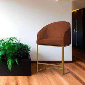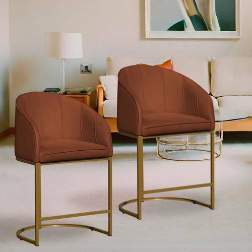 Kit 2 Poltronas Banqueta Decorativa Base Metal Mia Veludo Terracota - LM DECOR - Laranja
