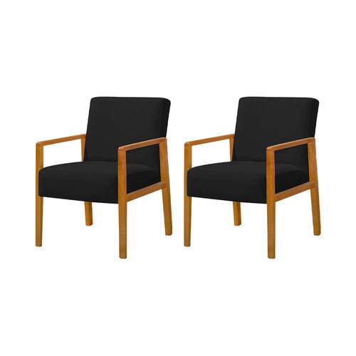 Kit 2 Poltronas Base em Madeira Maciça Decorativas Bora Bora Veludo Preto