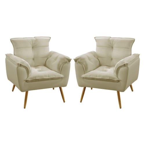 Características do Produto: Madeira de eucalipto proveniente de reflorestamento Fixação com grampos galvanizados Espuma Poliuretano D20 Enchimento com fibra siliconada e flocos Produto costurado Poltrona almofadada Revestimento: Sued Cor: Bege Tamanho: Único Possui pés: Sim Tipos de pés: Pés palitos Possui 8 pés palitos de 25 cm Poltrona suporta até 90 kg Embalagem: plástico bolha, papelão ondulado, plástico Garantia de 3 meses contra defeitos de fábrica.
