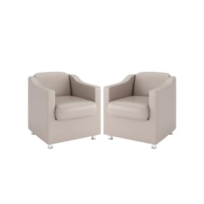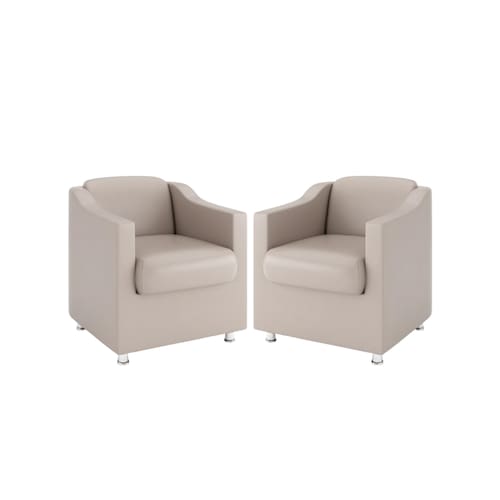 Kit 2 Poltronas Bia Decorativa Reforçada Recepção Clinica Salão Sala De Estar Courino - Bege