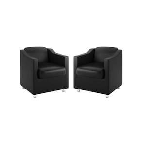 Kit 2 Poltronas Bia Decorativa Reforçada Recepção Clinica Salão Sala De Estar Courino - Preto