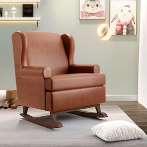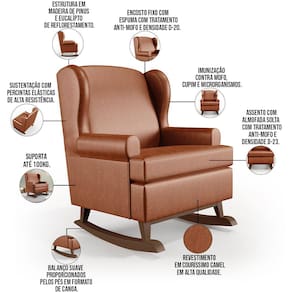Kit 2 Poltronas De Amamentação Com Balanço Malu Base De Madeira P02 Couríssimo Camel - Lyam Decor - Marrom