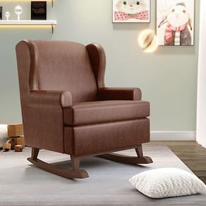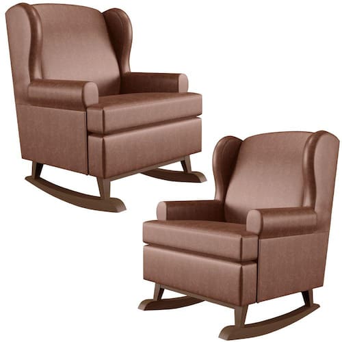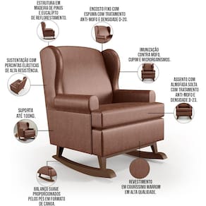 Kit 2 Poltronas De Amamentação Com Balanço Malu Base De Madeira P02 Couríssimo Marrom - Lyam Decor