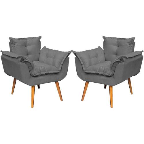 KIT 2 POLTRONAS ALICE SUEDE CORES PÉ TRAPÉZIO 30CM CASTANHO