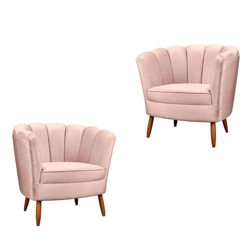 Kit 2 Poltronas Decorativa Ariel Petala Com Pés De Madeira Star Confort Rose