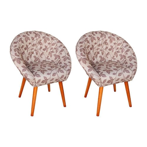AS IMAGENS SÃO MERAMENTE ILUSTRATIVAS E PODEM SOFRER VARIAÇÕES DE COR E PEQUENOS DETALHES DE ACORDO COM O SEU MONITOR, ILUMINAÇÃO DO AMBIENTE E ATÉ MESMO A SUA PERCEPÇÃO 2 Poltronas Decorativa Canastra Estofada Veludo Floral Marrom PÃs Palito em Madeira MaciÃa