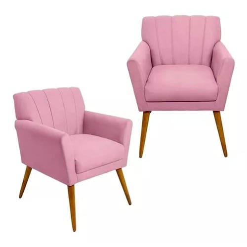 Kit 2 Poltronas Decorativa Cecília - Rosa Bebê