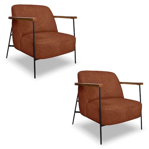 Kit 2 Poltronas Decorativa Celeste Linho Bouclê Base De Ferro Preto - Pallazio Cor Marrom