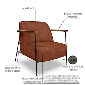 Kit 2 Poltronas Decorativa Celeste Linho Bouclê Base De Ferro Preto - Pallazio Cor Marrom - Blush