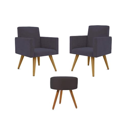 A poltrona Pés Palito traz muita segurança e conforto para seu ambiente. Sua estrutura é 100% em madeira Eucalipto e todo conforto se deve a espuma com densidade D-23. Com um design sofisticado, o Puff conta com acabamento em Suede.