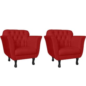 Kit 2 Poltronas Decorativa Dália Suede Vermelho Pés Madeira Ms Decor