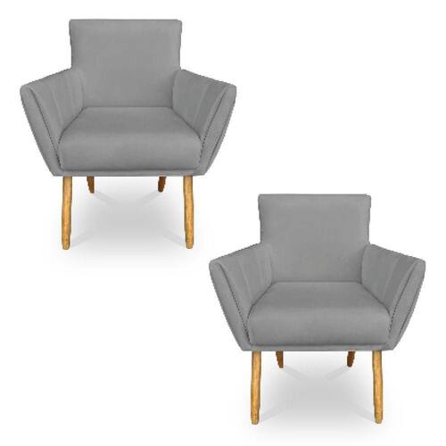 Kit 2 Poltronas Decorativa Leticia Suede Grafite Pés Palito Castanho - Pallazio - Cinza