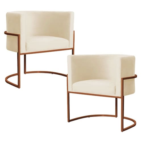 Kit 2 Poltronas Decorativa Luana Base Bronze Veludo Bege - Montanaris Decor