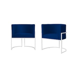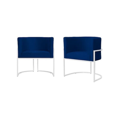Kit 2 Poltronas Decorativa Luana Suede Azul Marinho Base Branca Ms Decor