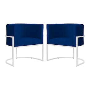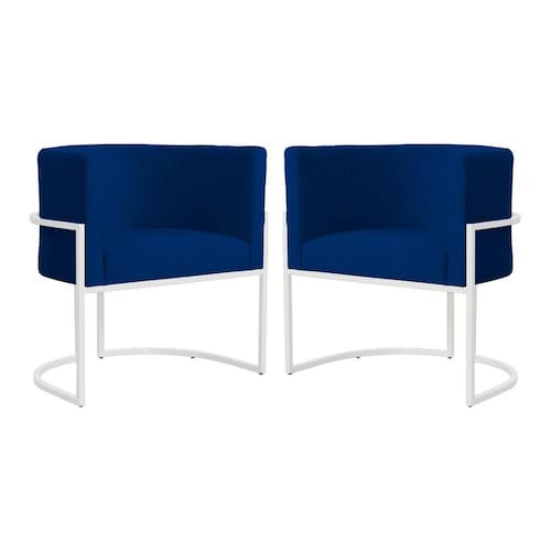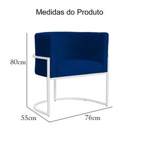 Kit 2 Poltronas Decorativa Luana Suede Azul Marinho Base Branca Mz Decor