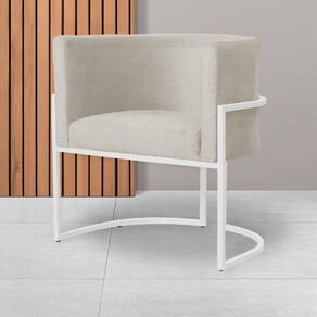 Kit 2 Poltronas Decorativa Luana Suede Bege Base Branca Ms Decor