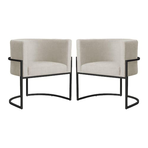 Kit 2 Poltronas Decorativa Luana Suede Bege Base Preta Mz Decor