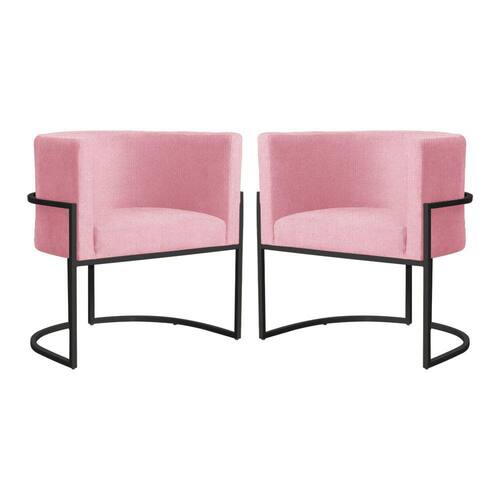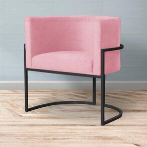 Kit 2 Poltronas Decorativa Luana Suede Rosa Base Preta Mz Decor