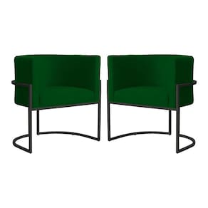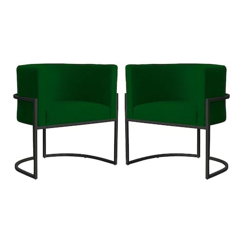 Kit 2 Poltronas Decorativa Luana Suede Verde Base Preta Mz Decor