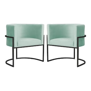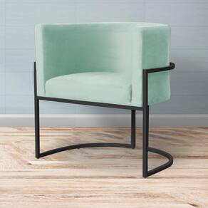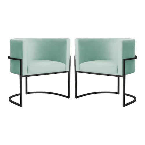 Kit 2 Poltronas Decorativa Luana Veludo Acqua Base Preta Mz Decor - Verde Claro