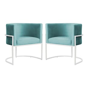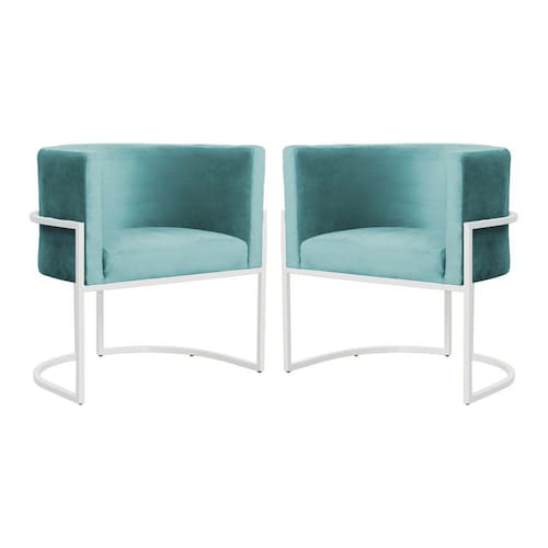 Kit 2 Poltronas Decorativa Luana Veludo Azul Tifany Base Branca Mz Decor