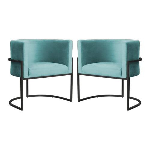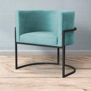 Kit 2 Poltronas Decorativa Luana Veludo Azul Tifany Base Preta Mz Decor