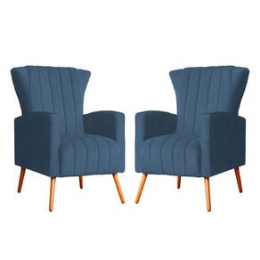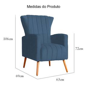 Kit 2 Poltronas Decorativa Melinda Suede Azul Royal Pés Madeira Mz Decor