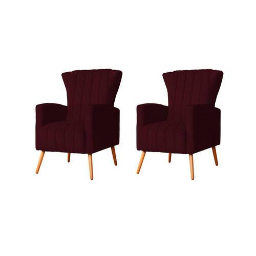 Kit 2 Poltronas Decorativa Melinda Suede Marsala Pés Madeira Ms Decor