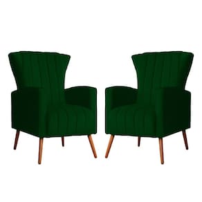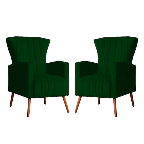 Kit 2 Poltronas Decorativa Melinda Suede Verde Pés Madeira Mz Decor