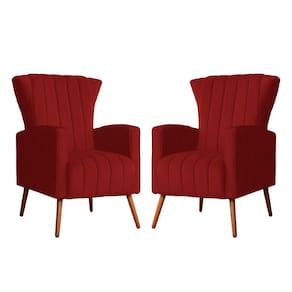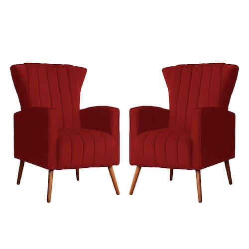 Kit 2 Poltronas Decorativa Melinda Suede Vermelho Pés Madeira Mz Decor