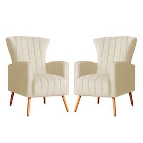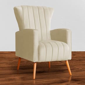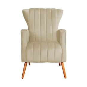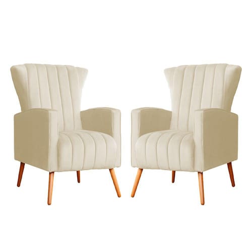 Kit 2 Poltronas Decorativa Melinda Veludo Bege Pés Madeira Mz Decor