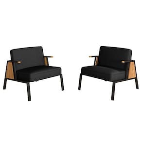 Detalhes Técnicos das Poltronas - Assento e Encosto Tapeçados, Estofados e Fixos - Espuma do Assento e do Encosto: D20 - Tonalidade: Preto Fosco (estrutura)/Cinamomo (detalhe braço)/Suede Preto (estofado) - Material: Estrutura em Metalon | Detalhe braço em MDF - Medida Poltrona: A: 72CM x L: 73CM x P: 85CM - Medida do chão até o assento: 42cm de altura - Poltrona suporta até 120KG - Montagem: Difícil