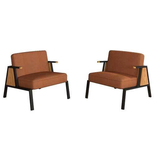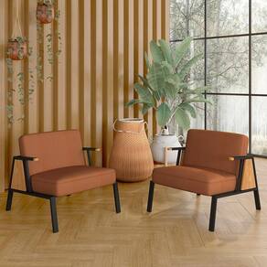 Detalhes Técnicos das Poltronas - Assento e Encosto Tapeçados, Estofados e Fixos - Espuma do Assento e do Encosto: D20 - Tonalidade: Preto Fosco (estrutura)/Cinamomo (detalhe braço)/Suede Terracota (estofado) - Material: Estrutura em Metalon | Detalhe braço em MDF - Medida Poltrona: A: 72CM x L: 73CM x P: 85CM - Medida do chão até o assento: 42cm de altura - Poltrona suporta até 120KG - Montagem: Difícil