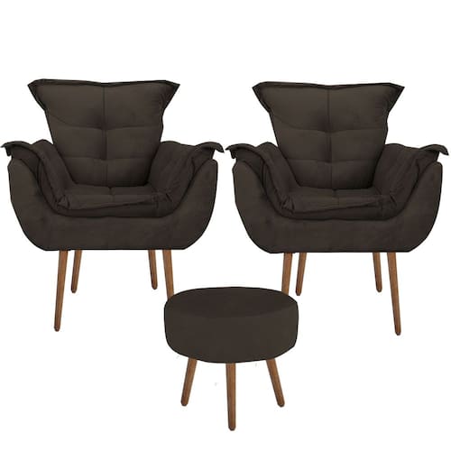 Kit com 2 Poltronas e 1 Puff redondo, ideal para sala de estar ou escritório. Com um design elegante e materiais de alta qualidade que irão proporcionar todo o conforto e sofisticação!