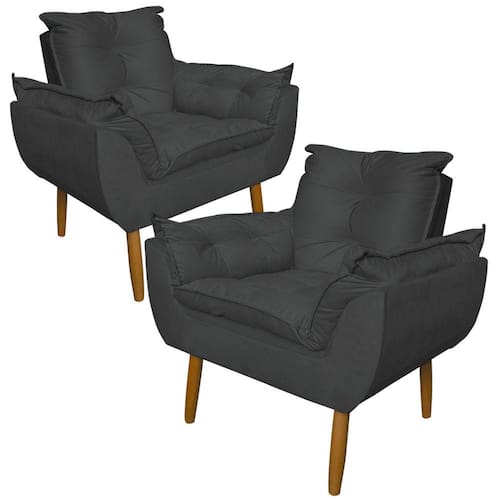 Kit 2 Poltronas Decorativa para Sala de Estar Opala Suede Cinza - Montanaris Decor