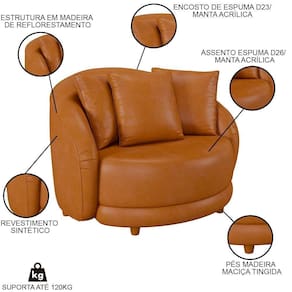 O design redondo com almofadas soltas faz com que essa poltrona moderna complemente a decoração da sua sala de estar, além de oferecer o máximo de aconchego, dando a sensação de estar sendo abraçado por ela. E tudo isso, graças à estrutura robusta com madeira maciça imunizada contra mofo, cupim e micro-organismo. Já a maciez do estofado fica por conta das espumas de alta densidade, reforçadas com cintas elásticas de alta resistência. Para completar, o pé de madeira evita o direto no chão e, ainda, dá aquele toque de charme.
