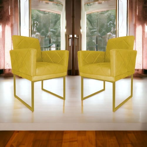 Kit 2 Poltronas Decorativa Pé Ferro Klara Suede Amarelo - Londrilar