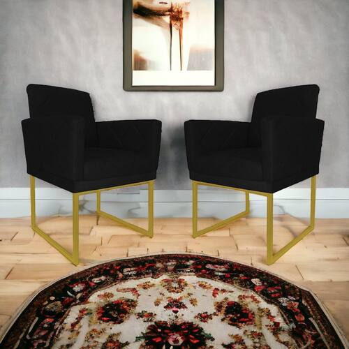 Kit 2 Poltronas Decorativa Pé Ferro Klara Suede Preto - Londrilar